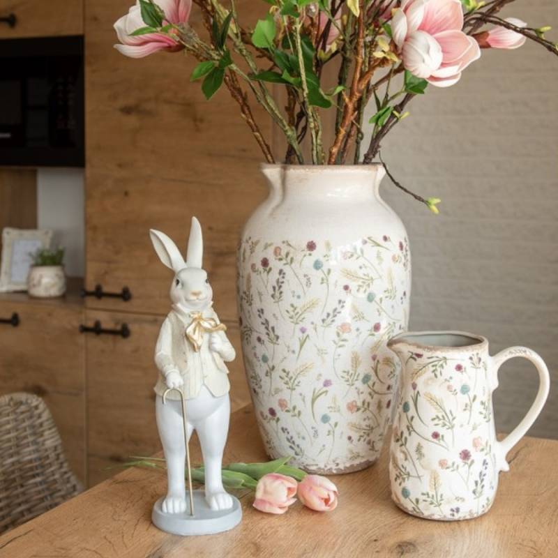 Decoratiune Pasti, figurina iepure elegant cu palarie, 51 cm