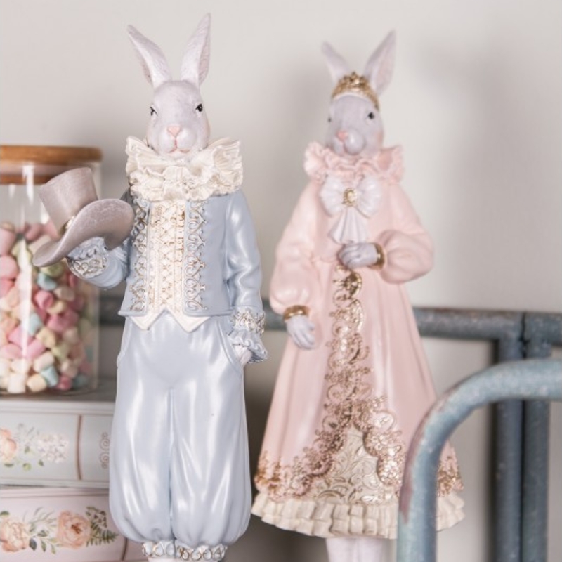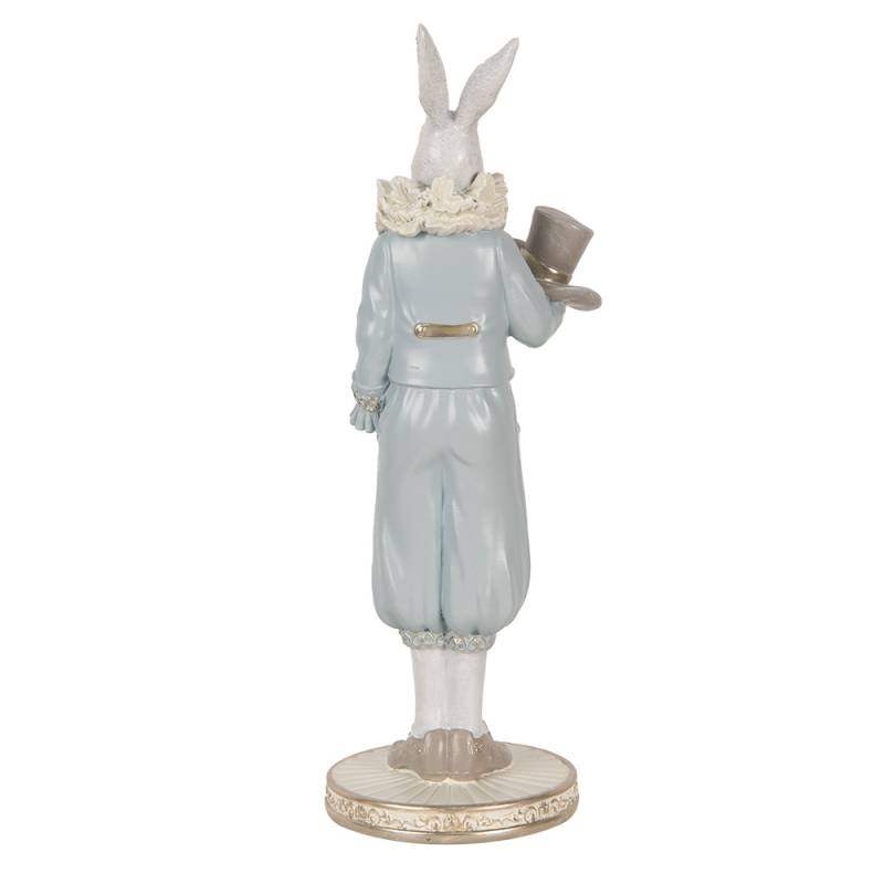Decoratiune de Pasti iepuras in costum bleu. Este ideala pentru un decor deosebit de sarbatoare. Decoratiunea este potrivita pentru casa sau gradina de-a lungul intregului an. Poate fi un cadou perfect de Pasti. Material: polirasina. Dimensiuni: 11 x 10 x 31 cm.