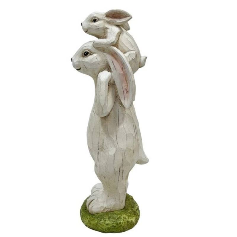 Decoratiune de Pasti iepuras tata cu pui. Este ideala pentru un decor deosebit de sarbatoare. Decoratiunea este potrivita pentru casa sau gradina de-a lungul intregului an. Material: oxid de magneziu. Dimensiuni: 17,5 x 15 x 48 cm.