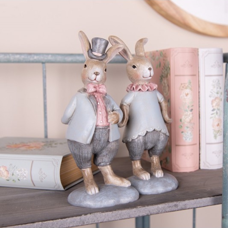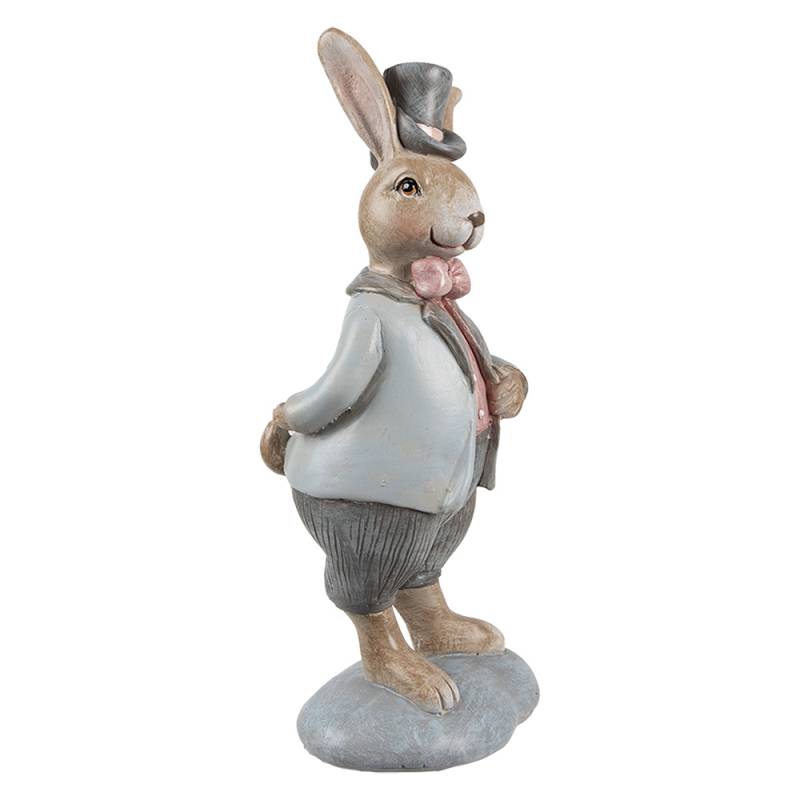 Figurina de Pasti iepure cu joben, stil rustic. Este ideala pentru un decor deosebit de sarbatoare. Decoratiunea este potrivita pentru casa sau gradina de-a lungul intregului an. Poate fi un cadou perfect de Pasti. Material: polirasina. Dimensiuni: 8 x 7 x 19 cm.