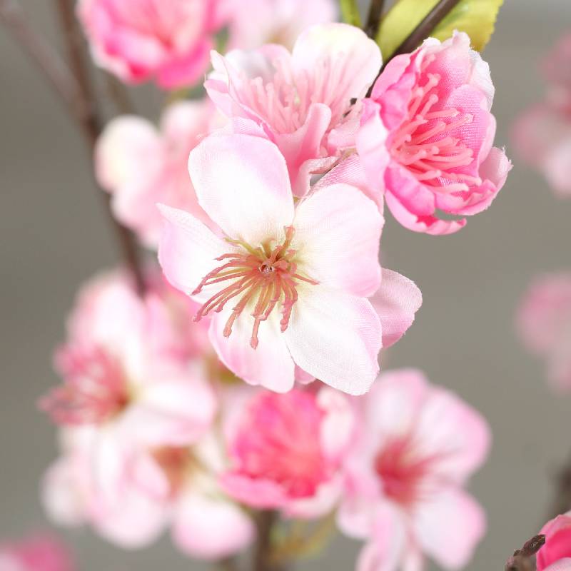Planta artificiala cires cu flori roz in ghiveci de plastic negru este ideala pentru decorarea casei si a gradinii.