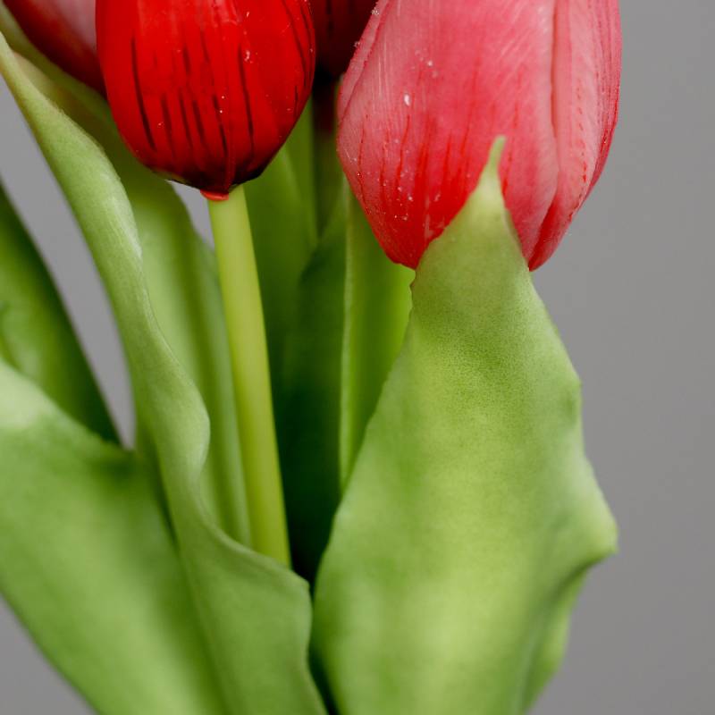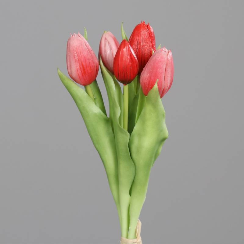 Buchet de 5 lalele artificiale cu aspect real, nuante de rosu, 31 cm