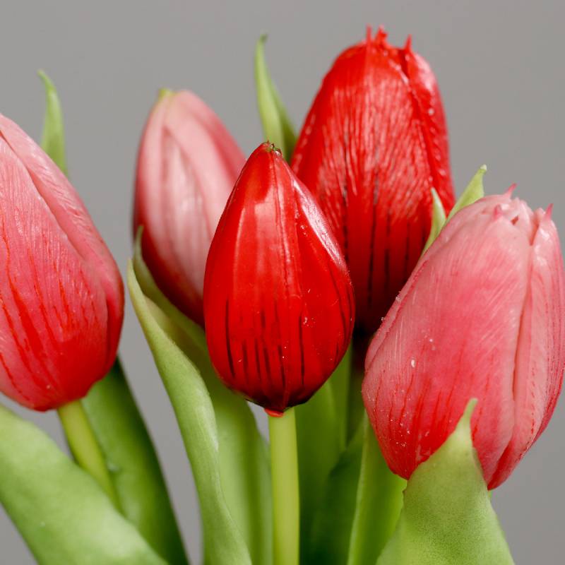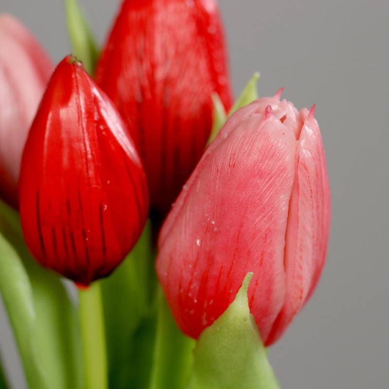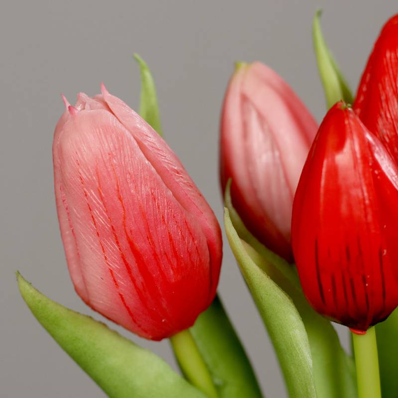 Buchet de 3 lalele si 2 boboci de lalea cu aspect foarte real, menit sa aduca primavara in casa ta.
