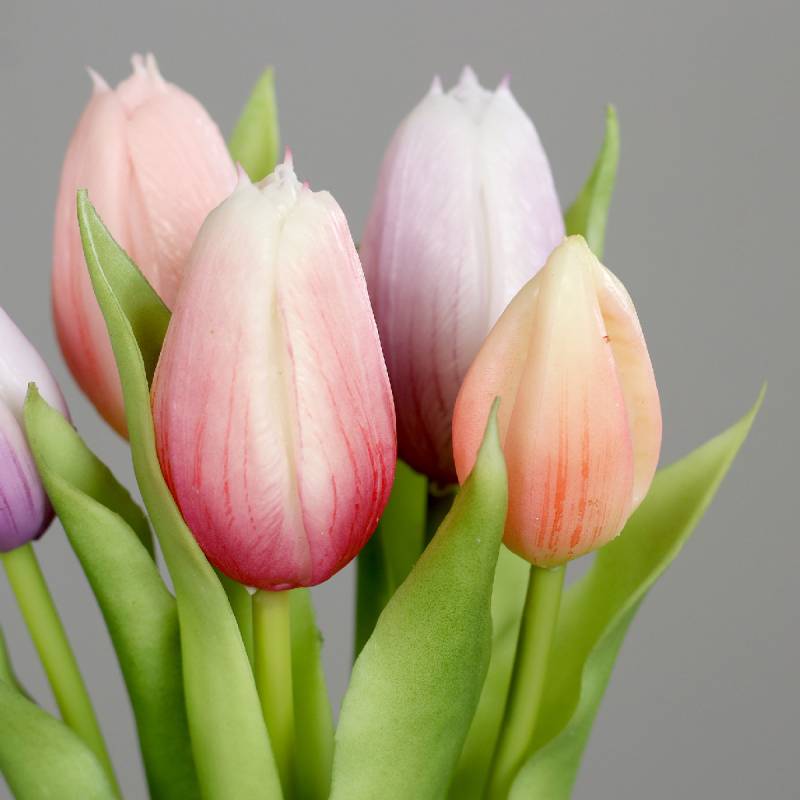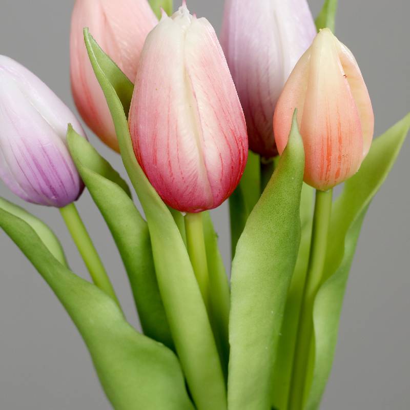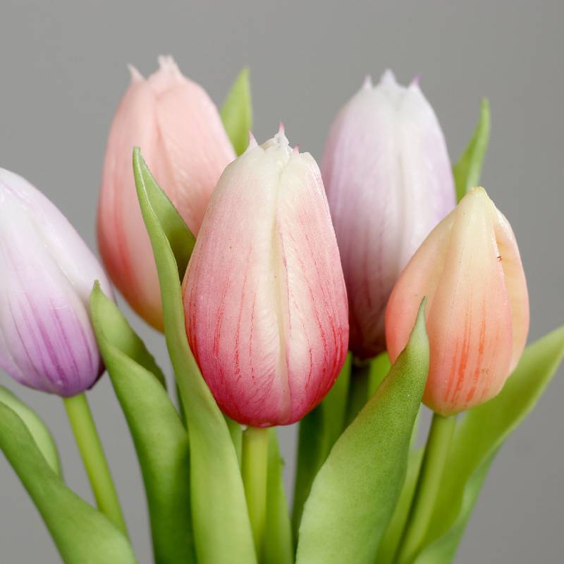 Buchet de 3 lalele si 2 boboci de lalea cu aspect foarte real, menit sa aduca primavara in casa ta.