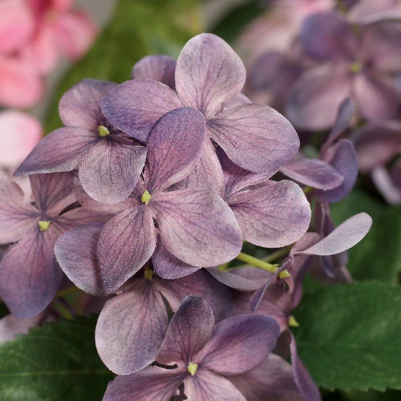 Tufa de 18 fire de hortensii mari, roz si mov, cu aspect foarte real.