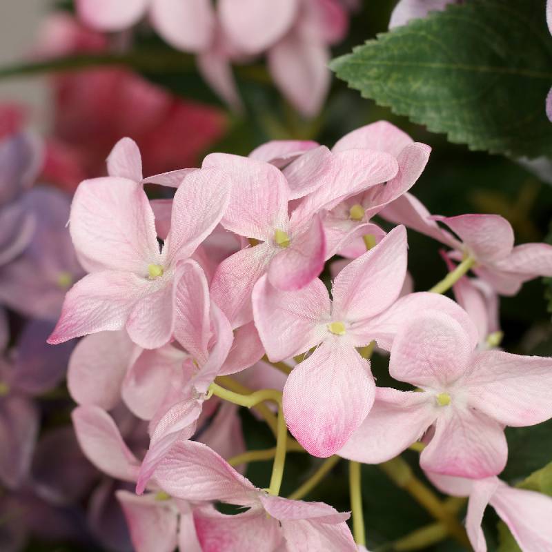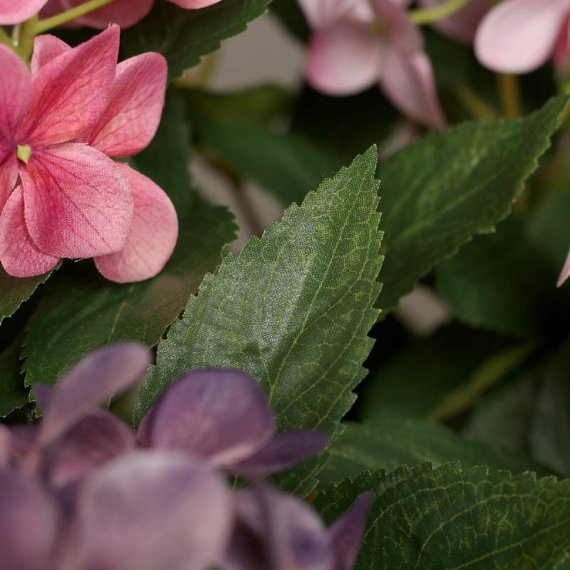 Hortensii artificiale roz si mov in tufa de 18 fire in vas de plastic, 67 cm